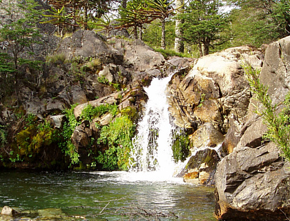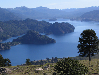 Nos encontramos en Villa Pehuenia, en el centro oeste de la Provincia de Neuquén, a 300 Km. de la Capital Neuquina y a tan solo 15 km del pueblo de Icalma (Chile). La naturaleza los invita a éstas tierras pintorescas, con bosques de araucarias milenarias, ñires, coihues, radales, entre otros, arroyos, vertientes, lagunas y En plena Cordillera Andina a 1.200 m.s.n.m., esta tierra se hace llamar Tierra del Pehuén (Villa Pehuenia), bajo el manto del viejo Mahuida. Este viejo volcán (Batea Mahuida), con una gran laguna en su interior, posee una altitud de 1900 m. s. n. m. . |