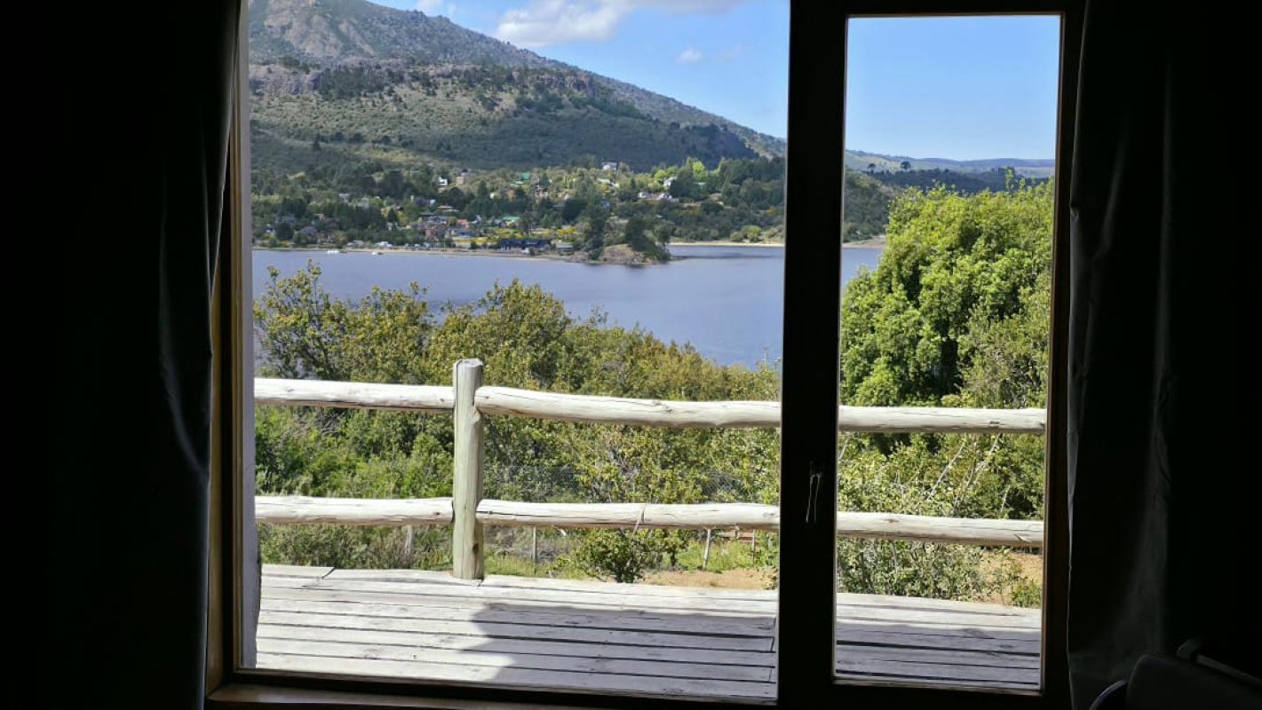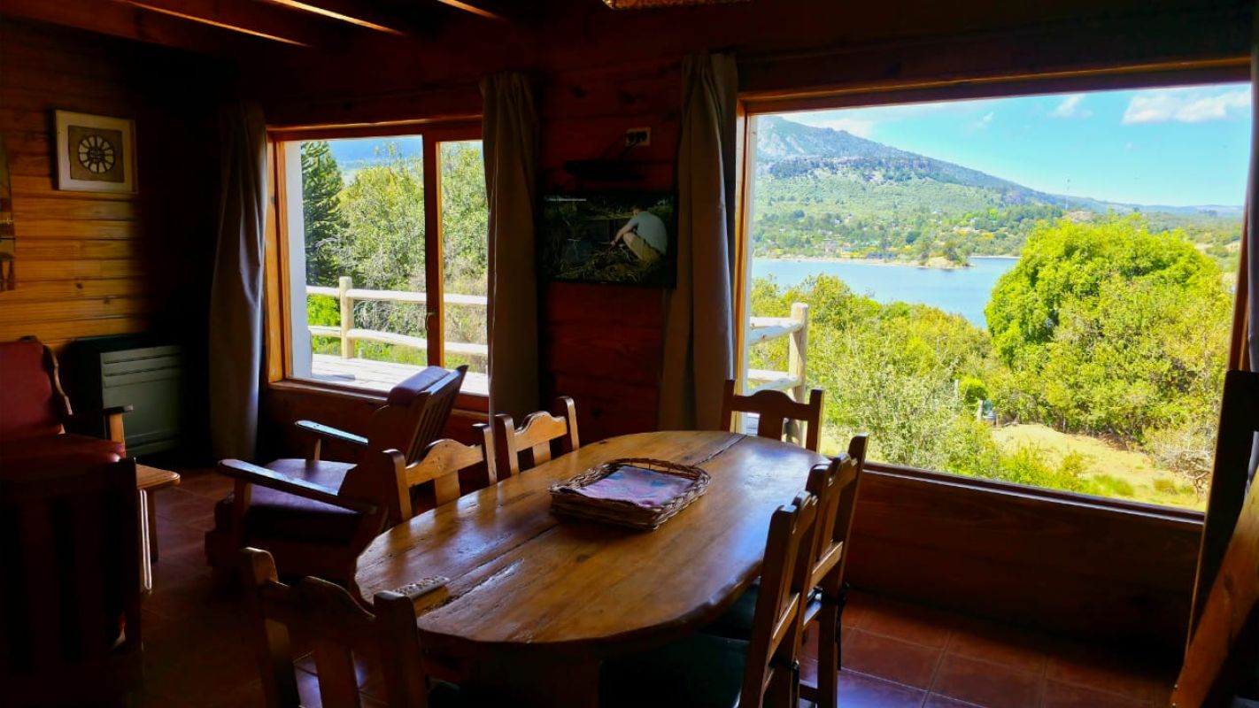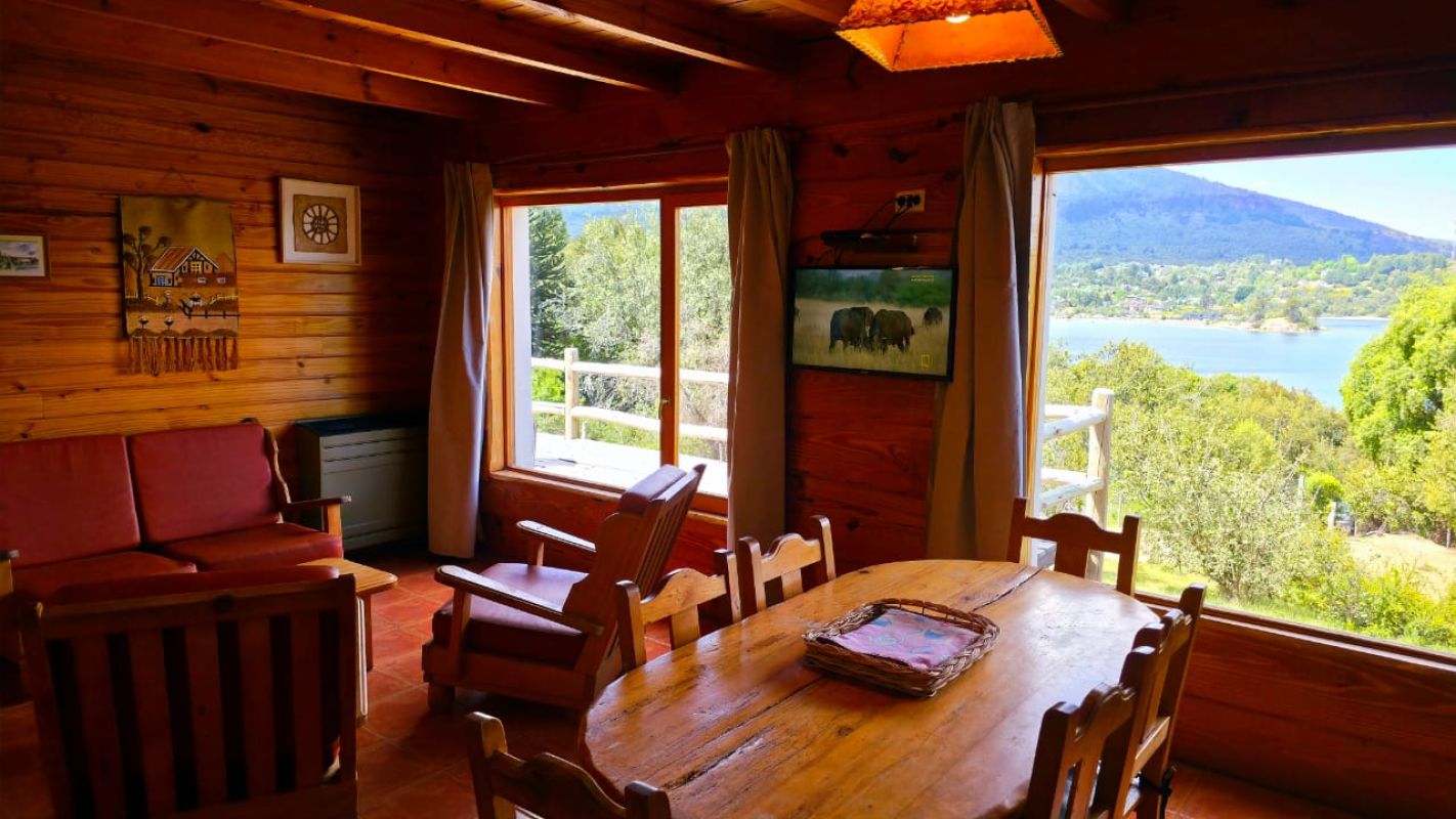 Nuestras cabañas amplias, cálidas y confortables, se ubican a metros de la playa con vistas al Lago Aluminé y cerros lindantes.