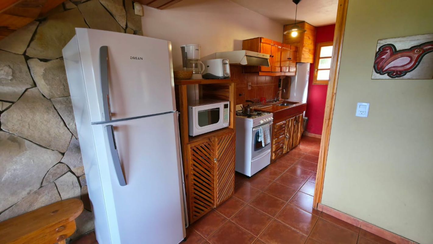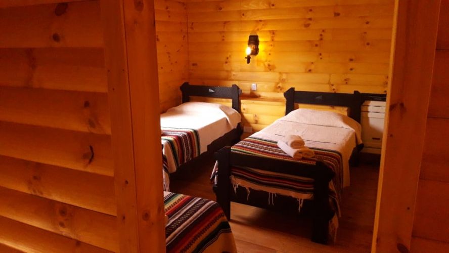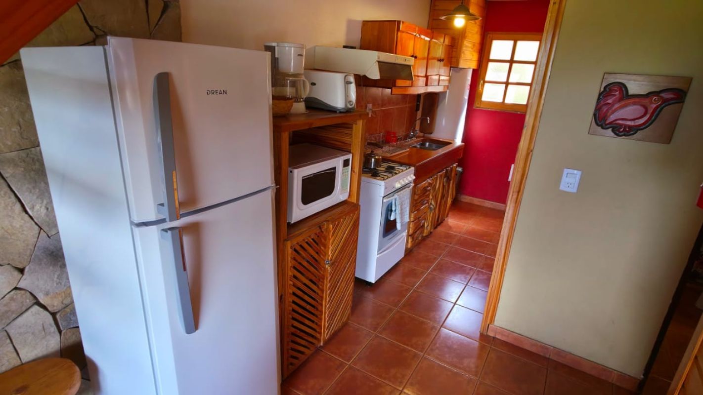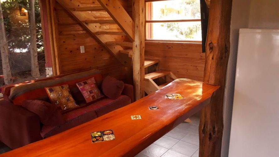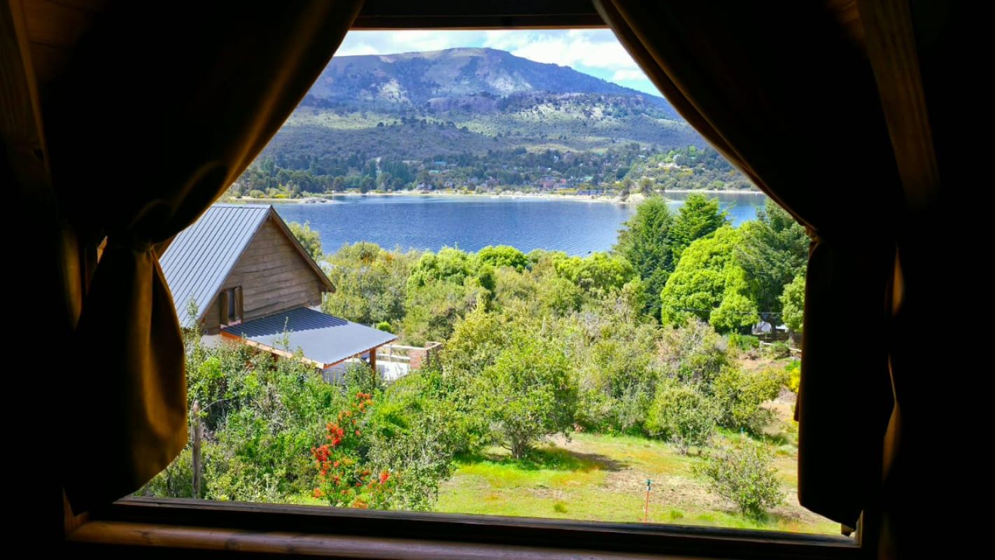 Nuestras cabañas amplias, cálidas y confortables, se ubican a metros de la playa con vistas al Lago Aluminé y cerros lindantes.